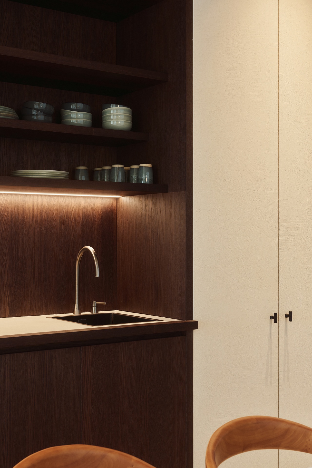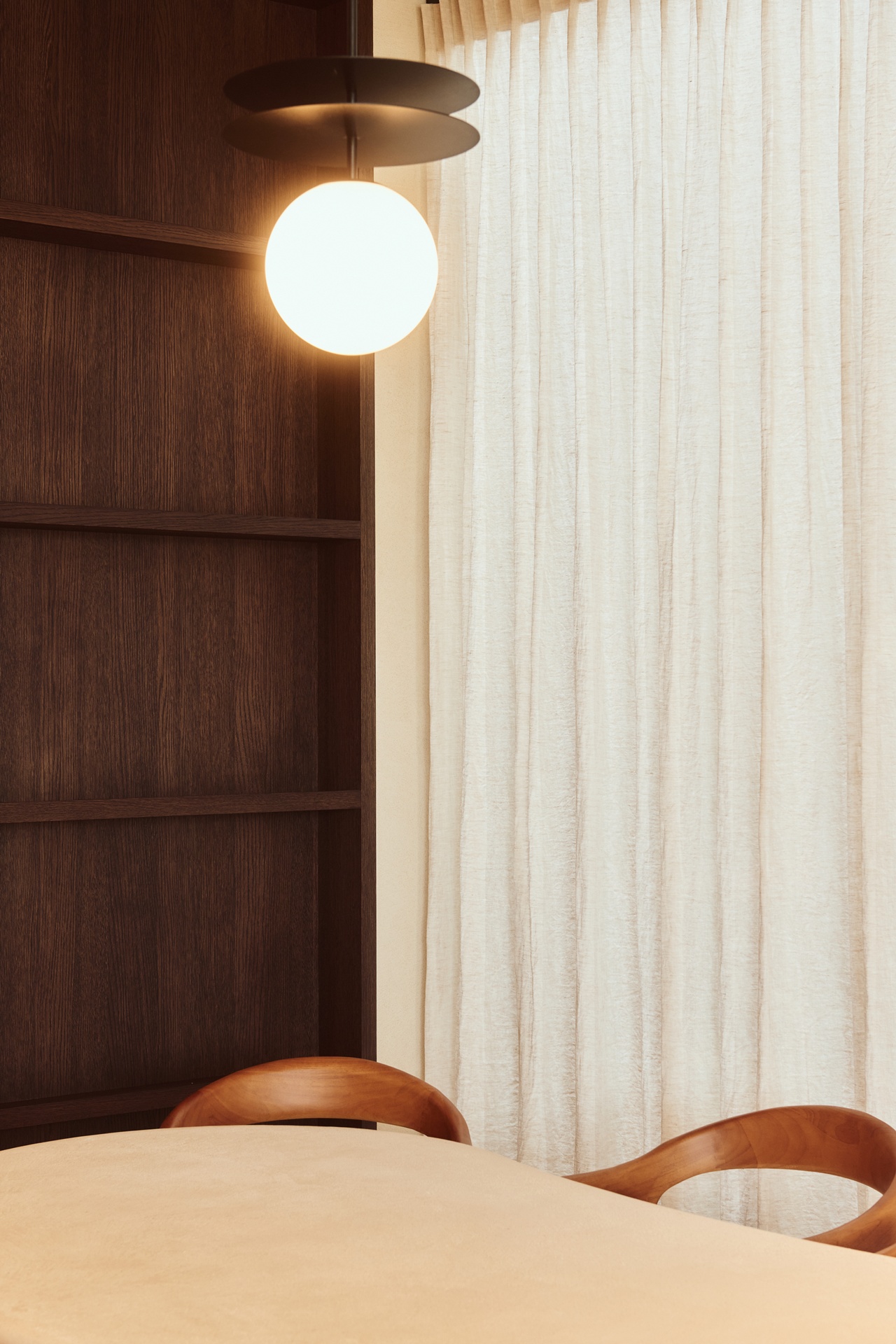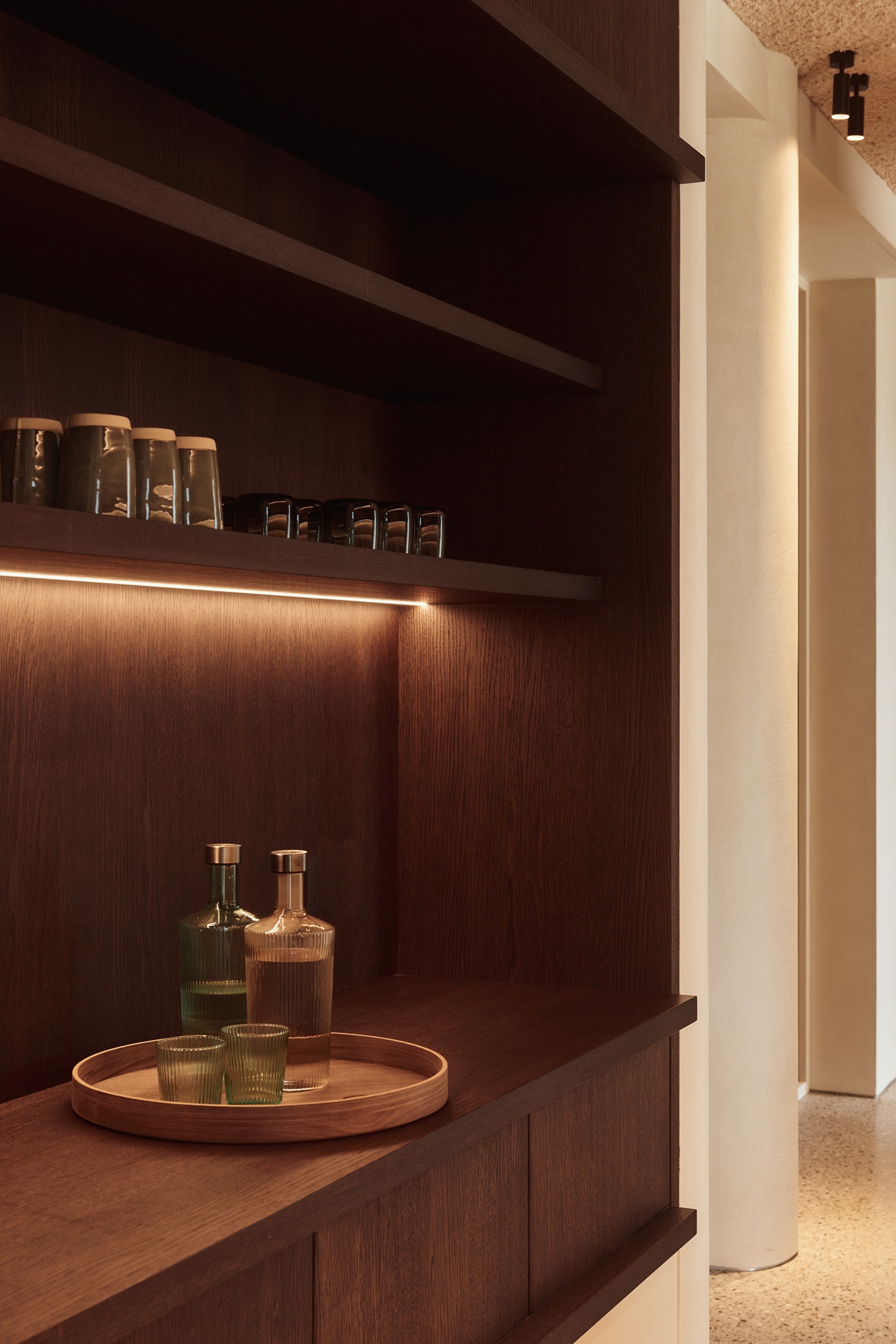 Ook aan ontspanning werd gedacht: een stijlvolle bar vormt het centrale ontmoetingspunt, afgewerkt met subtiele, kleurrijke accenten die het geheel karakter en levendigheid geven.
