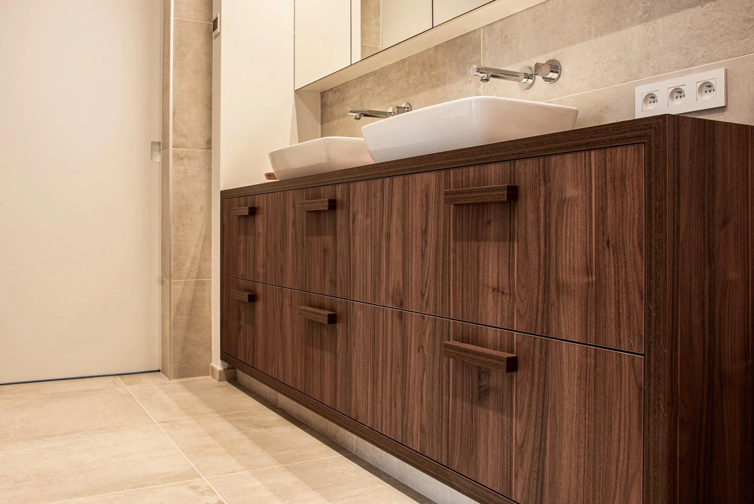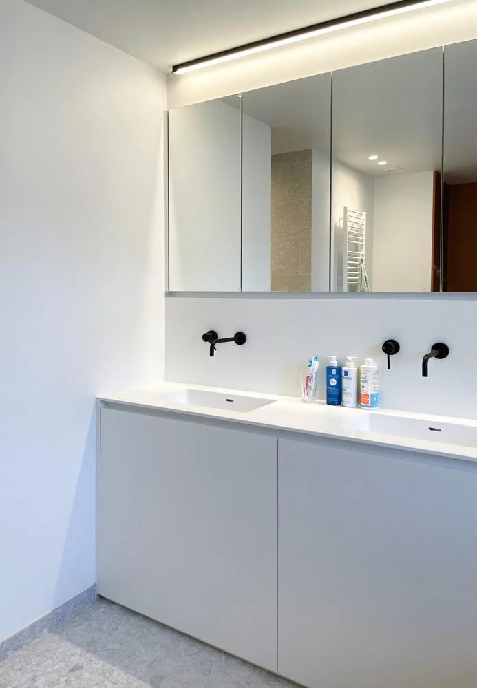 In gezinswoningen in Berlare moet een badkamerkast tegen een stootje kunnen. We ontwerpen maatwerk dat overzicht biedt, ook wanneer de badkamer intensief gebruikt wordt.