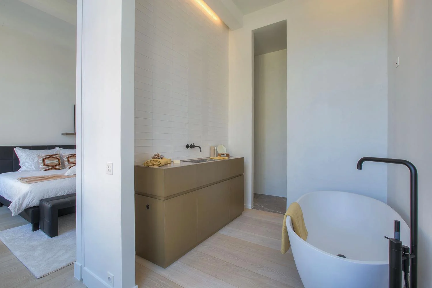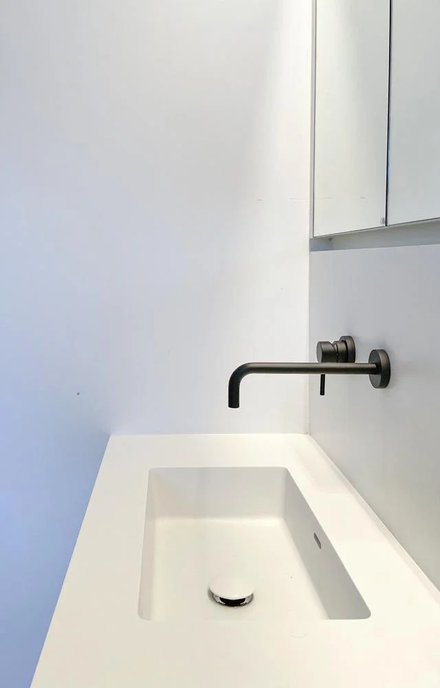 Misschien wil je een regendouche met een ingebouwde nis voor je spullen. Of een dubbele wastafel zodat jullie niet in elkaars weg lopen. Of misschien een ligbad onder een dakraam, met kastruimte verstopt in de wanden. Wij tekenen uit wat past bij hoe jij die ruimte beleeft, en we bouwen het zo dat het klopt tot in de voeg.