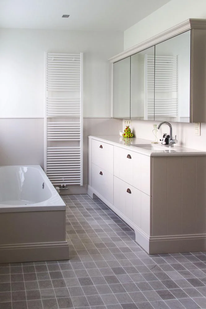 In gezinswoningen in Zele moet een badkamerkast tegen een stootje kunnen. We ontwerpen maatwerk dat overzicht biedt, ook wanneer de badkamer intensief gebruikt wordt.