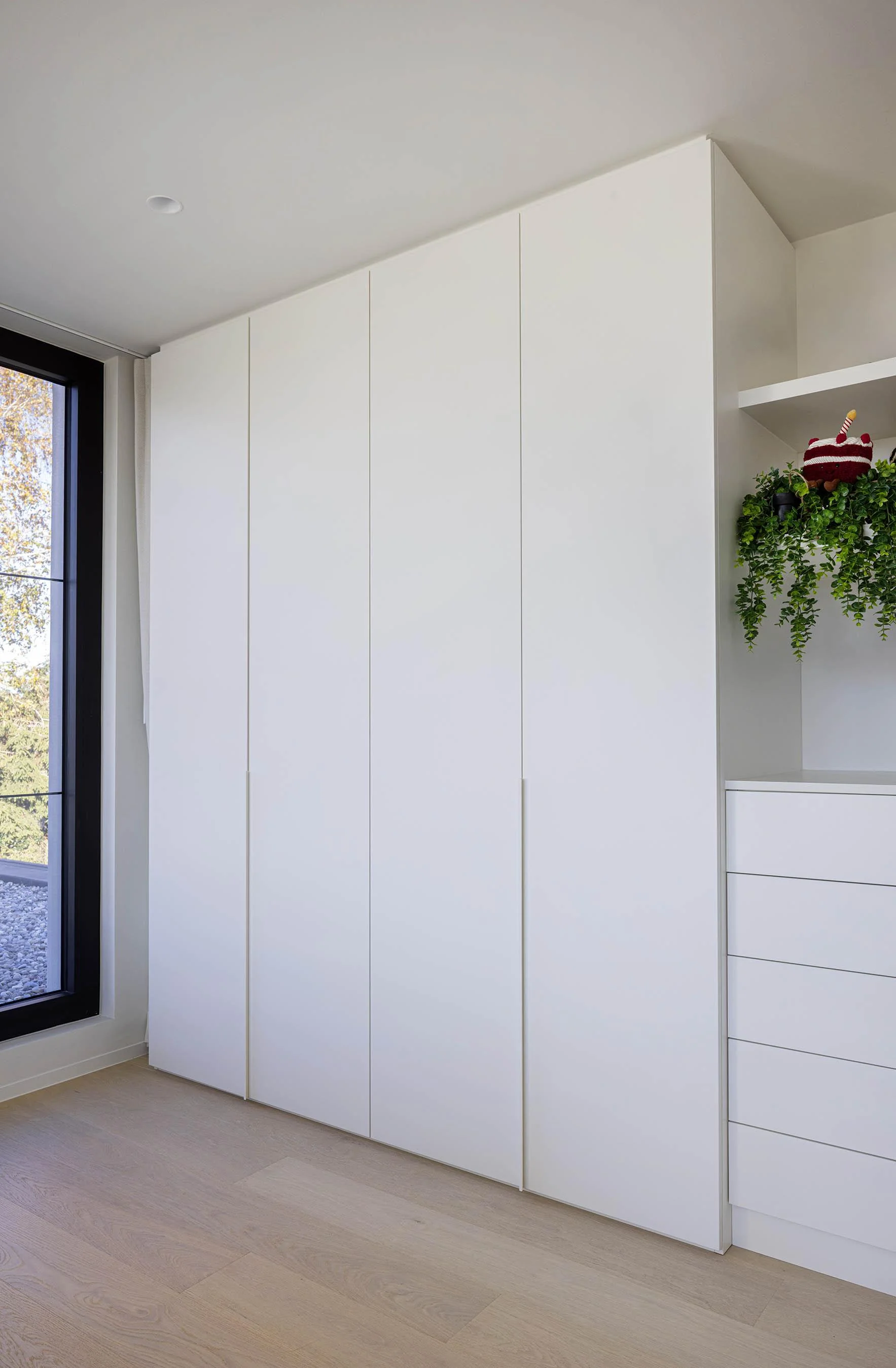 In gezinswoningen in Hamme zien we vaak dat de dressing intensief gebruikt wordt. Daarom focussen we op overzicht, stevige materialen en een indeling die meegroeit.