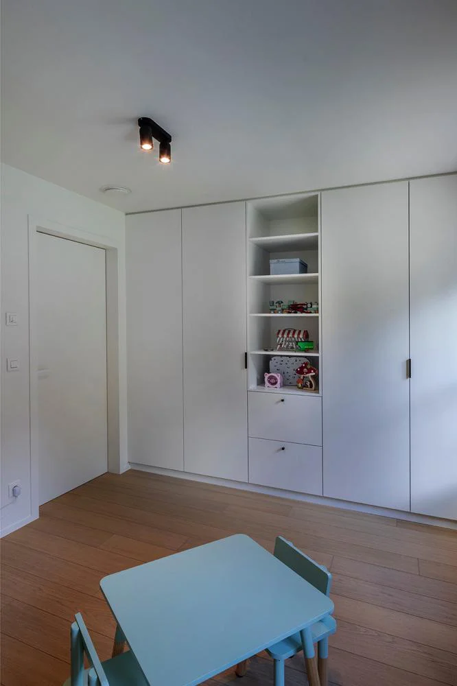 In gezinswoningen in Lebbeke zien we vaak dat de dressing intensief gebruikt wordt. Daarom focussen we op overzicht, stevige materialen en een indeling die meegroeit.