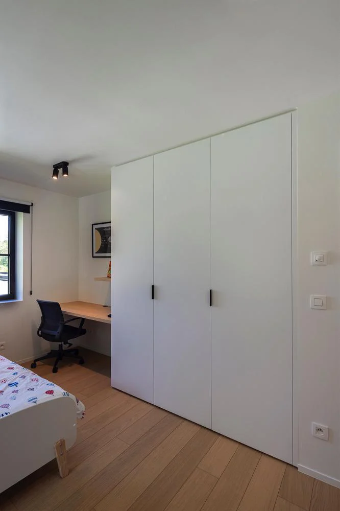 In woningen in Wichelen zorgt een dressing op maat voor rust en overzicht. Geen losse kasten of compromissen, maar een doordachte opbergoplossing die klopt in vorm en gebruik.