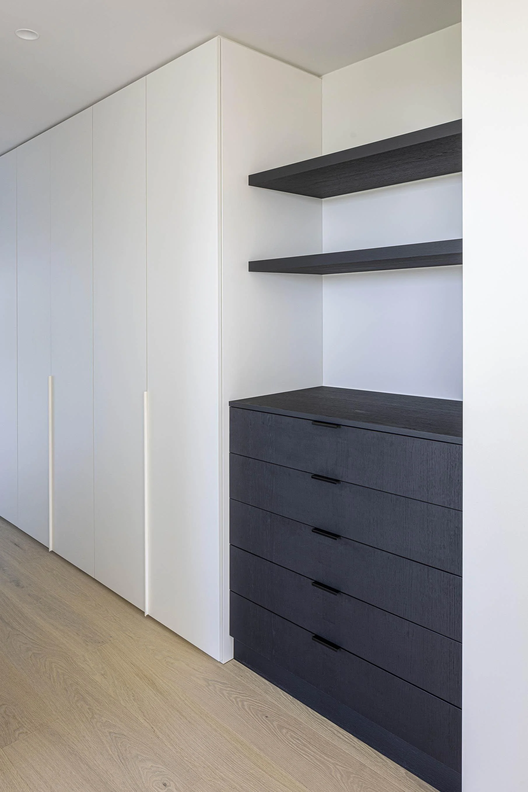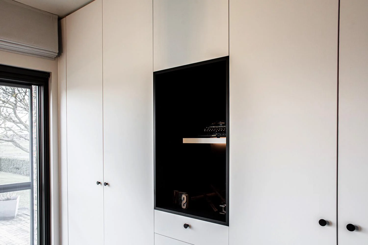 Of je nu gaat voor een echte inloopruimte, een eenvoudige inbouwkast in de slaapkamer of een verborgen inbouwwand: wij tekenen uit wat past bij je spullen, je gewoontes en de architectuur van je woning.