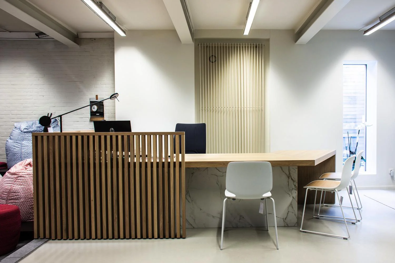Krijg je veel klanten over de vloer? Dan kies je misschien voor een ontvangstbalie die meteen de toon zet. Werk je vaak internationaal, dan is een vergaderruimte met ingebouwde schermen misschien belangrijker. Of misschien zoek je gewoon wat we allemaal zoeken: werkplekken die ruimte geven zonder chaotisch aan te voelen. Wij tekenen uit wat past.