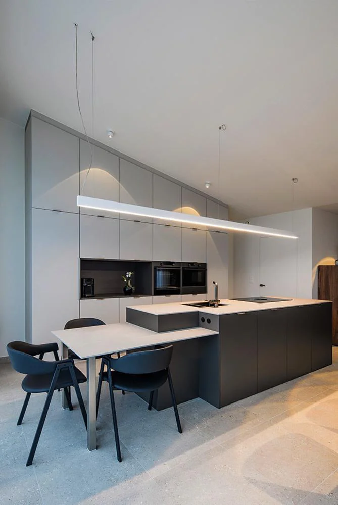 Plan je bezoek aan onze toonzaalIn en rond werken we vaak in woningen waar ruimte slim benut moet worden. Een keuken op maat laat toe om elke wand en hoek functioneel te gebruiken, zonder het geheel zwaar te maken.
