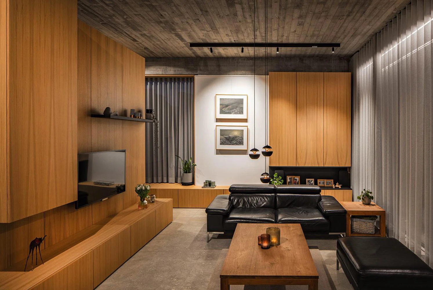 Misschien kies je voor een volledig ingebouwde TV-wand. Of een bureau dat overloopt in boekenkasten. Of een loungehoek met banken vol verborgen opbergruimte. Wij tekenen uit wat past bij hoe jij die ruimte gebruikt, en we bouwen het zodat het eruitziet alsof het er altijd al stond. Een plek die rust brengt en blijft werken.